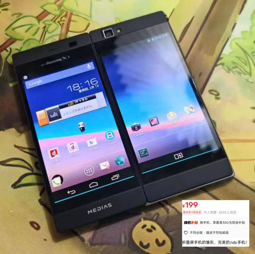 它就是NEC在2013年发布的N-05E双屏手机,当时由于屏幕技术限制,无法做成全屏折叠,只好用双屏来拼接了。由于它没出过行货,不像京瓷KSP8000的名气那么大。