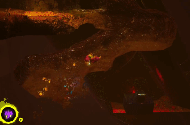 但在《咚奇刚:蕉力全开》中,有一张地图名为“掩埋场的地层”。进入这张地图后,角色上下左右全方位都是泥土,土里预先埋好了宝藏、敌人,还有一些交互装置,但玩家并不知道它们的方向和位置,眼前的世界一切都是未知的。