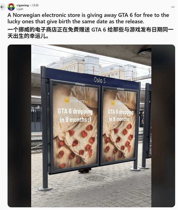 近日,挪威在线零售商Komplett.no推出了一项堪称史上最离谱的营销活动,如果顾客的孩子恰好在《GTA6》发售当天出生,商家将免费赠送一套该游戏。